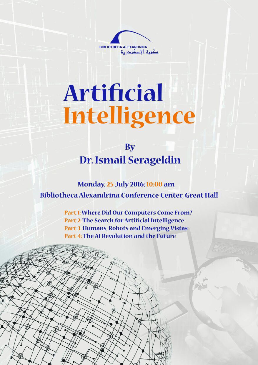 25/7/2016 Artificial Intelligence Lecture by Dr. Ismail Serageldin Monday, 25 July 2016; 10:00 am Bibliotheca Alexandrina Conference Center, Great Hall View poster