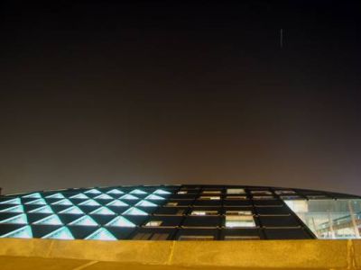 صورة تبين المحطة الفضائية الدولية وهي تحلق في سماء الإسكندرية، فوق مكتبة الإسكندرية