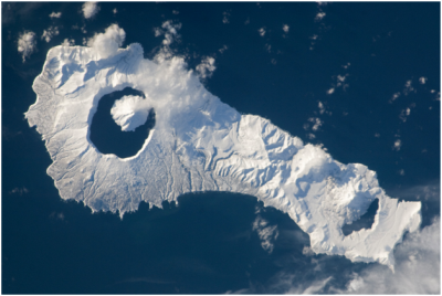نشرت وكالة الفضاء الأمريكية ناسا حديثًا صورة رائعة لجزيرة بركانية يغطيها الجليد، وتقع بالقرب من الطرف الشمالي لسلسلة جزر الكوريل، الواقعة في شمال غرب المحيط الهادي. تم التقاط الصورة بواسطة أحد رواد الفضاء، من المحطة الفضائية الدولية، التي تدور حول الأرض على ارتفاع يبلغ حوالي 350 كم.
