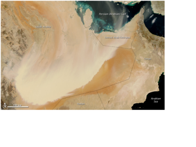 في 26 مارس 2011، هبت عاصفة ترابية قوية في شبه الجزيرة العربية، واندفعت لمسافة 500 كم عبر الجزيرة، لتغطي أجزاء من المملكة العربية السعودية واليمن وعمان الإمارات.