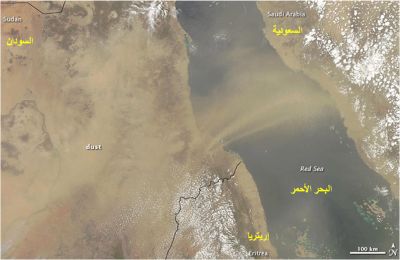 في يوم 26 يوليو 2012م، هبت عاصفة رملية قوية عبر سواحل السودان إلى البحر الأحمر. وقد التقط القمر الصناعي أكوا، التابع لوكالة الفضاء الأمريكية ناسا، صورةً للعاصفة (صورة رقم (1)) في نفس اليوم، الذي كان ثالث أيام نشاط هذه الرمال.