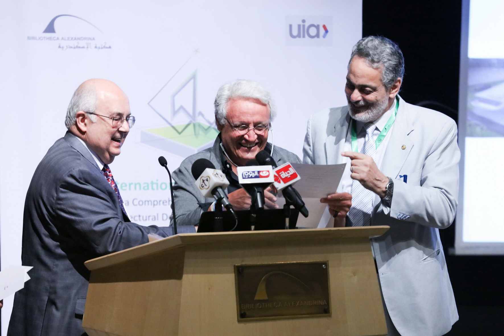 From the main participants in this huge festival were: Dr. Ismail Seragaldin, Director of the Bibliotheca Alexandrina, Eng. Mohamed Abd Elzaher, Governor of Alexandrina, Eng. Hoda ElMikaty, Deputy Director of the Bibliotheca Alexandrina, in addition to Dr. Nilkos Ventakaks, representative and member of the International Union of Architects, and Dr. Saifullah Abu El Naja, Head of the Egyptian Section of the International Union of Architects.