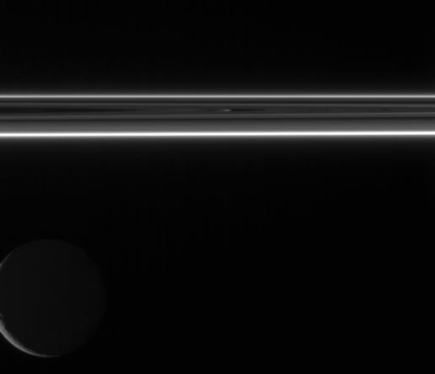 NASA recently published an exquisite Cassini spacecraft image showing Saturn's F ring, shining in scattered sunlight, and Saturn's second largest moon Rhea (1,528 km across).