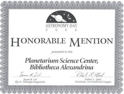 The Planetarium Science Center reached the final round of selections for the Sky & Telescope Astronomy Day Award. Although the Center did not win, the judges were very impressed with the entry and decided to award the Center an Honorable Mention.