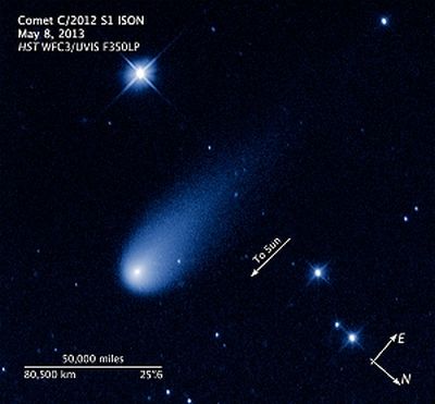 In 21 September 2012, the Russian Astronomers Vitali Nevski and Artyom Novichonok, from the International Scientific Optical Network, discovered Comet ISON. The discovery was made using a 16-inch reflector, where the Comet was at a distance of 934 million km from the Sun, which is approximately 6 times the distance between the Earth and the Sun.