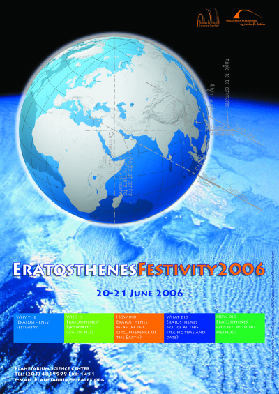 7) the measuring of the Earth's Circumference applying Eratosthenes's method on 21 June; and