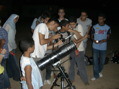 The PSC team organizes excursions to different locations, where the sky can be easily observed, bringing groups of children together with specialists, including astronomers, in a free atmosphere where a variety of activities, such as workshops, competitions, games and quizzes, are conducted in addition to the astronomical observation. This activity is repeated on a weekly basis during summer time and on special astronomical occasions throughout the year, such as the Meteor Shower observed in Siwa on the night of 19 November 2006.