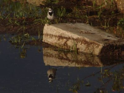 A White Wagtail near a Pond