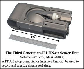 Once it is in place on a spacecraft, ENose will run 24 hours a day, 7 days a week, monitoring the air to make sure that dangerous substances, such as mercury, or coolants, such as Freon, are not present in the cabin.