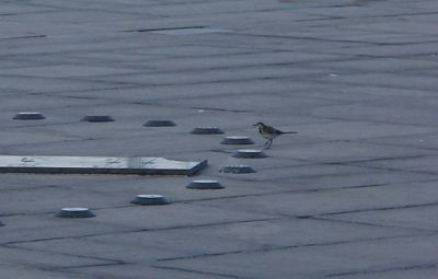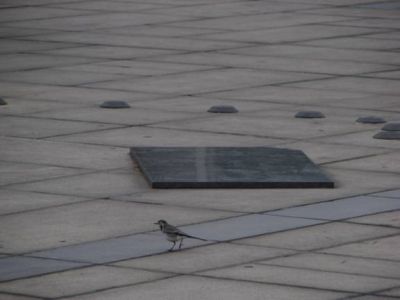 A white wagtail stands on the BA Sundial.