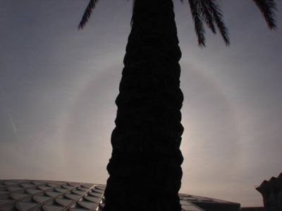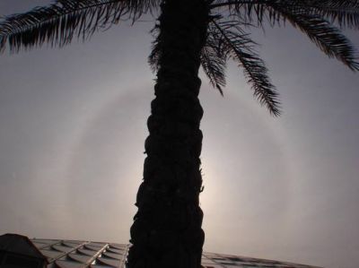 The picture shows a nearly complete Sun halo over the BA. Sun disc is beyond the palm tree.