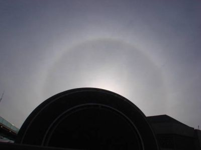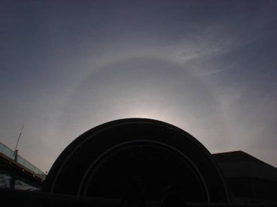 On 1 January 2008, there were patterns of high clouds in the sky of Alexandria, Egypt. Due to the passage of sunlight through the tiny ice crystals contained in these clouds, a bright Sun halo encircled the rising Sun. BA Senior Astronomy Specialist, Aymen Ibrahem, took numerous interesting images of this Sun halo, with the Library building and the Planetarium as foreground objects.
