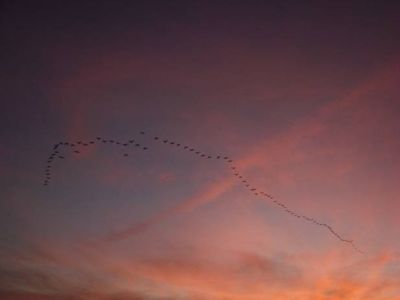 The picture shows a huge flock of migratory birds.