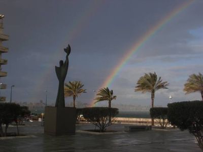 On the morning of 14 February 2008, heavy rain fell in Alexandria, Egypt. A bright rainbow gleamed over the BA. Observing from the BA Plaza, BA Senior Astronomy Specialist, Aymen Ibrahem, imaged the spectacular rainbow, and its fainter, larger twin, the secondary rainbow.
