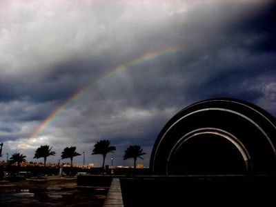 On the morning of 12 February 2008, it rained heavily in Alexandria, Egypt. Observing from the BA Plaza, BA Senior Astronomy Specialist, Aymen Ibrahem, captured the image of a rare bright rainbow, showing a fascinating optical phenomenon, known as the rainbow wheel.