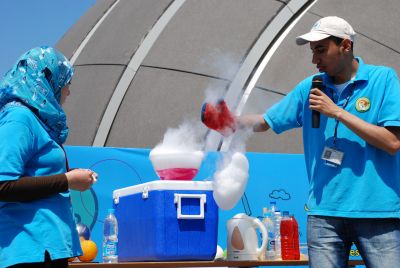 On the first two days, the Science Festivity took place at the BA; it included the science village, the "Science Café", the Super Science Show, documentaries and tours in the PSC. In addition, the Egyptian band “Massar Egbary” gave a wonderful performance at the BA plaza in the evening of 2 April, which was a blast. On 3 April, the science village moved to Antoniadis Gardens.