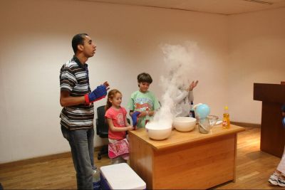 Abdallah started the Super Science Show six years ago in an attempt to present science through another channel besides hands-on workshops. The Show evolved over the years, turning into a dynamic and highly motivational activity that gets children involved in exciting hands-on experiments in the fields of physics, biology, and chemistry, that stimulate infectious enthusiasm. This ever-intriguing show allows children to use a variety of materials, such as balloons, bouncing balls, balance board, water, liquid Nitrogen, dry ice and soda cans.