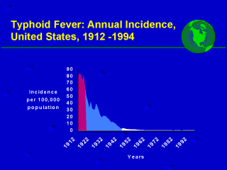 per 100,000 per year that is each year, typhoid fever struck at least 1 in