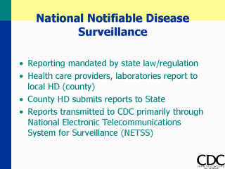 System (NNDSS): http://www.cdc.gov/epo/dphsi/nndsshis.htm National Electronic Telecommunications