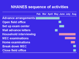 This schematic shows an example of the sequence of activities for NHANES.