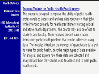 http://www.cdc.gov/nchs/about/otheract/Educators/unieducators.htm#Training Module for Public Health Practitioners |