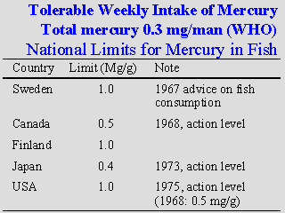 tolerable weekly intake of 0.3mg total mercury per person, of which