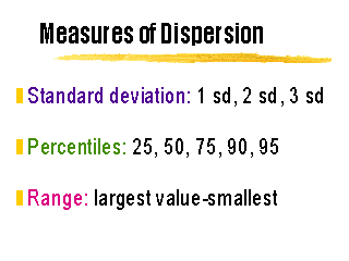 Dispersion of the data can be expressed using the standard deviation (SD) or percentiles. Use of SD when data are not normally distributed may be innappropriate.