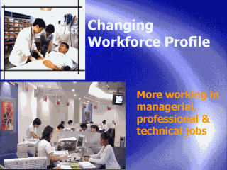 | As Singapore transits to a knowledge-based economy, more in our workforce are being employed in managerial, professional and technical jobs. Employment in manufacturing activities has declined relative to that in other sectors, particularly, financial and business services. The development of OSH in Singapore will need to move in tandem with the changing employment landscape. |