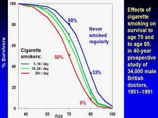 Source: Doll R, Peto R, Wheatley K et al. Mortality in relation to smoking. BMJ 1994; 309: 901–911
