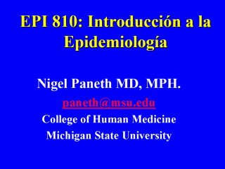 | Traducción de la conferencia Introduction to Epidemiology, realizada por Nicolas Padilla, Facultad de Enfermeria de Celaya, Universidad de Guanajuato, México |