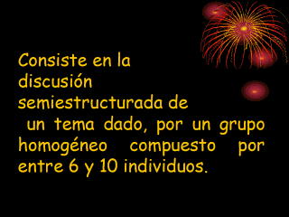 | El termino "semiestructurado" implica que el debate no está sujeto a un control tan rígido como las entrevistas que se valen de un cuestionario estandarizado; tampoco se trata de una conversación no estructurada. El debate es conducido por un moderador capacitado, que se apoya en un manual de preguntas. |