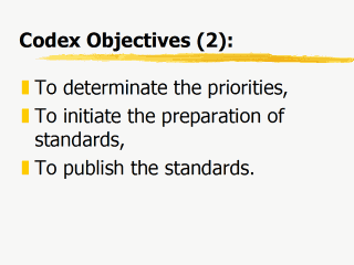 - Publishing the standards in a Codex