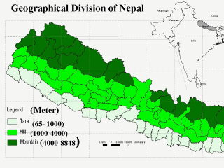 east, west and south, and north by China. Nepal is divided into three distinct parts officially based on elevation.