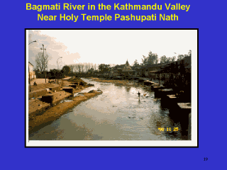 | Polluted water of the holy river Bagmati near Pashupati temple, the most sacred place of Kathmandu. |