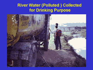 | One of the polluted tributaries of the Bagmati river, the tanker is filling water and sale it as potable water to the consumer. |