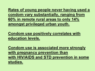 | There is a complex and puzzling relationship between the motivations for using condoms given that condoms are a contraceptive and also an HIV barrier method. There has been little promotion of the dual protective value of condom use. |