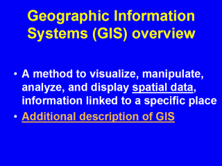 Many people think of GIS as a set of mapping programs. A broader view of GIS would include any method to view the spatial relationships among different objects. For example, the United States Census 2000 can identify counties in America with the highest rates of poverty and superimpose the racial makeup of those counties using GIS. GIS allows the viewer opportunities to understand spatial information in a different way.