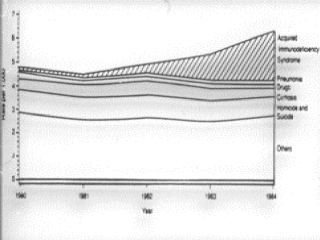 anos em NY, nos anos de 1980 a 1984). As populações estudadas estavam em áreas de saúde com taxas médias de gonorréia retais e faríngeas, em homens, acima de 500/100.000 homens com idades entre 15 a 54 anos, entre 1978 a 1982.