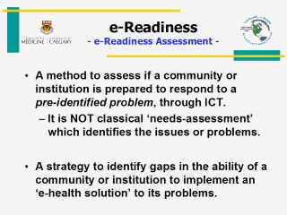 Most of the readiness assessment has been done for e-learning and e-business purposes.
