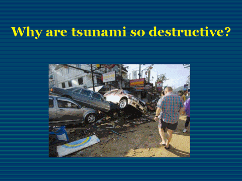 and strike with devastating force. Tsunamis are among the most terrifying natural hazards known to man. They have been responsible for tremendous loss of life and property throughout history." Citation source: http://www.drgeorgepc.com/TsunamiFAQ.html Source of picture: http://www.spiegel.de/fotostrecke/0,5538,4807,00.html |