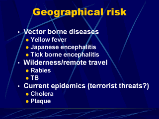 of potential vaccinations that may be considered to travel to specific areas. |