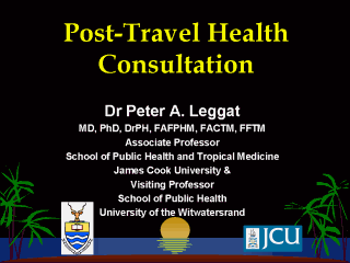 | This lecture is one of a series produced for James Cook University, Australia, and the University of the Witwatersrand, South Africa. The lectures are used as part of their annual travel medicine courses. |