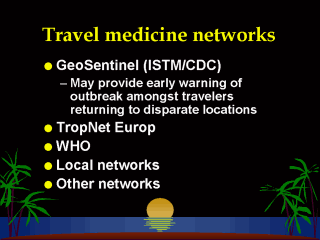 throughout the World (Freedman et al., 1999). Freedman DO, Kozarsky PE, Weld LH, Cetron MS. GeoSentinel: The Global Emerging Infections Sentinel network of the International Society of Travel Medicine. J Travel Med 1999;6:94-98.