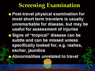 rashes and other telltale signs of travel related diseases. Injuries may