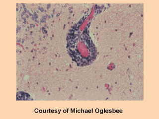 usually quite apparent in old dog encephalitis with highly inflammatory