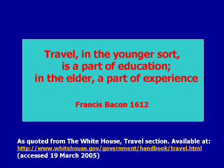 A quote from Francis Bacon has relevance to older travelers.
