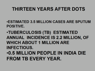 | TB HAS A DEVASTATING SOCIO-ECONOMIC COST IN INDIA, WITH DIRECT AND INDIRECT ECONOMIC COSTS OF TB ARE ESTIMATED TO BE AROUND RS 12,000 CRORE (EACH CRORE IS 10 MILLIONS) PER YEAR |