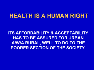Health is a human right, which has also been accepted in the constitution. Its accessibility and affordability has to be insured. While the well-to-do segment of the population both in rural & urban areas have acceptability and affordability to wards medical care, at the same time cannot be said about the people who belong to poor segment of the society. It is well known that more then 75% of the population utilizes private sectors for medical care unfortunately medical care becoming costlier day by day and it has become almost out of reach of the poor people. Today there is need for injection of substantial resources in the health sectors to ensure affordability of medical care to all. Health insurance is an important option, which needs to be considered by the policy makers and planners.