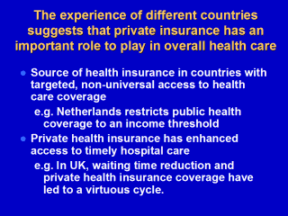 Private health insurance has led to expansion of health coverage and expenditure in other countries.