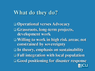 NGOs are usually proficient in both advocacy and operational capability.